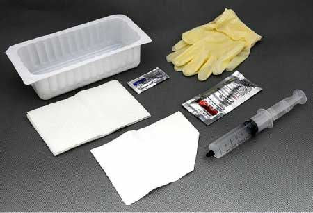 AMSure Foley Catheter Insertion Kit includes Prefilled 30 mL Syringe of Sterile Water, 1 Pair of Stretchy Vinyl Gloves, Waterproof Drape, Fenestrated Drape, 1 Lubricating Jelly Packet and 3 PVP Swabsticks. Catheter sold separately.