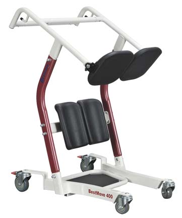 The Bestcare BestMove STA400 and STA450 Standing Transfer Aid devices allow the user to actively participate in the transport process. Designed for users with enough strength in their arms and legs to rise and support themselves. Once standing, swivel seats lock into place with the assistance of a caregiver, which allows the patient to sit comfortably and safely during transport. The BestMove Standing Transfer helps with transfers from chair or bed to toileting or wheelchair and vice versa.
