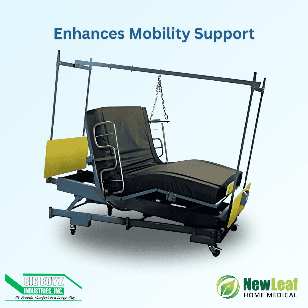A bed-mounted trapeze designed specifically for Big Boyz beds, allowing patients to assist themselves in repositioning, sitting up, or transferring safely.