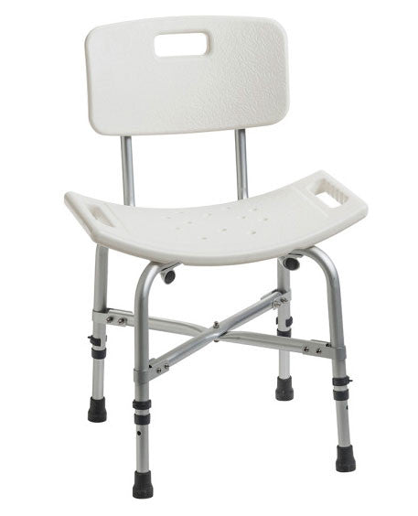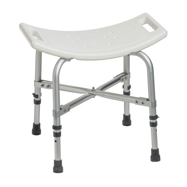 With a 500-pound weight capacity, this bariatric bath bench from Drive Medical is strong and sturdy. A cross brace attached with aircraft style rivets provides dependable strength. Available in two styles with and with out back this bath bench provides a feeling of security. The blow molding on the back and seat are contoured to provide extra comfort. Drainage holes in the seat reduce slipping, while adjustable height legs ensure a proper fit. The aluminum frame is lightweight, durable and corrosion proof.