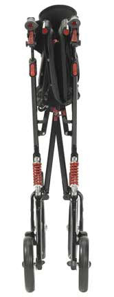 Featuring revolutionary design and eye-catching style, the Nitro has exploded onto the Rollator scene. The Nitro's caster fork design allows for an enhanced turning radius while the 10" front casters allow optimal steering and rolling comfort. In addition, the Nitro locates brake cables within the unit's frame for safety and offers quick and easy tool-free adjustment to the handle height and back support. Plus, the Nitro easily folds with one hand to ultra-compact size for storage. The Nitro HD provides easy mobility for users up to 450 lbs with a wider seat and a unique suspension system for support and comfort.