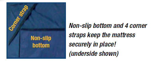 - Non-slip bottom and 4 corner straps keep the mattress securely in place