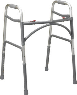 Drive Medical Bariatric Aluminum Folding Two Button Walker with steel legs and side braces offers sturdy support and confidence. The wider and deeper frame design offers a spacious 20.5" width inside the hand grips and 23" width inside the back legs.