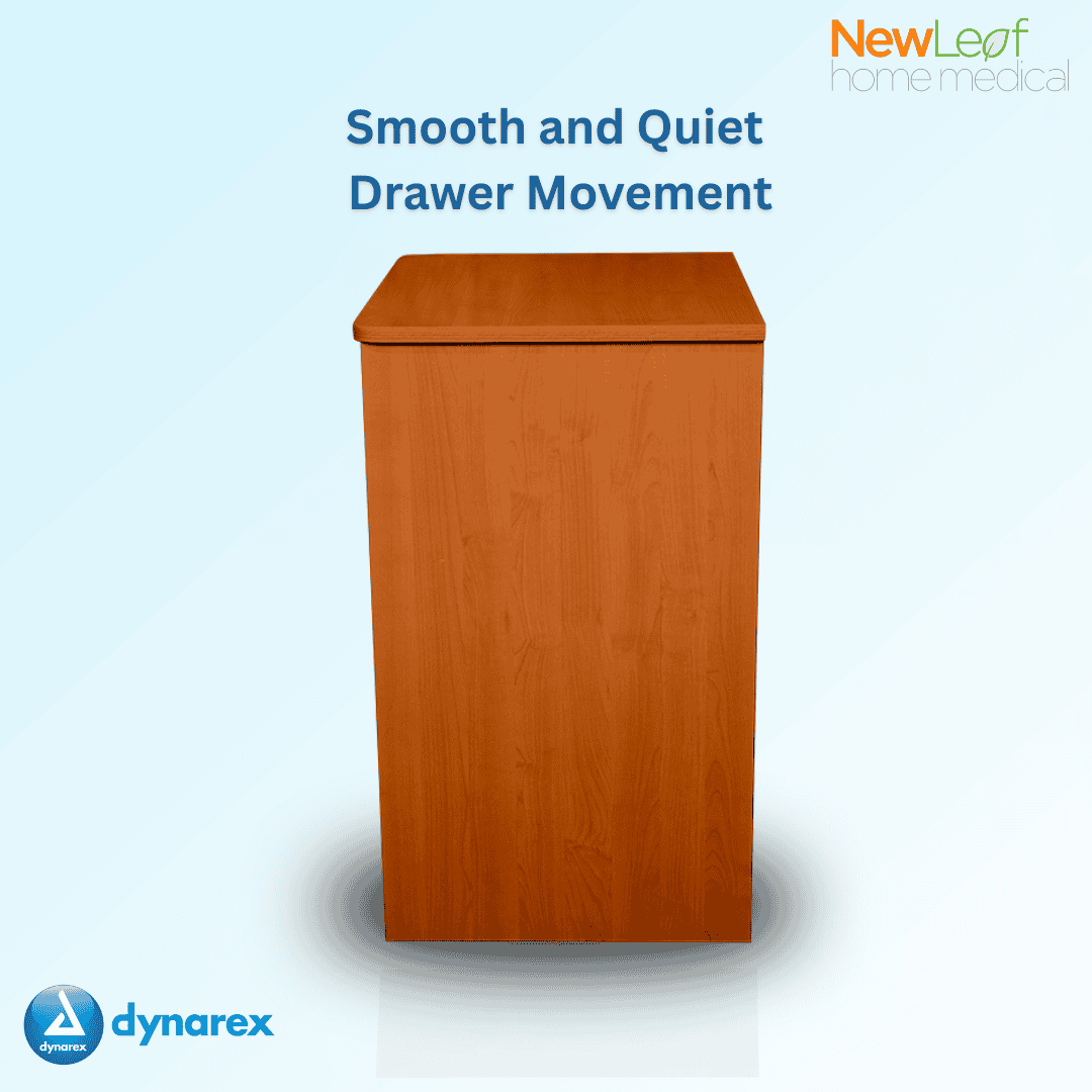 The Dynarex Three Drawer Nightstand combines safety, durability, and style for ample and efficient storage and organization of bedside items to help reduce clutter. The space-saving Nightstand features a locking top drawer with two keys for secure storage of personal belongings. Ball-bearing drawer slides allow for smooth sliding and quiet closure. The Nightstand is engineered with rounded corners for optimal safety and features a choice of attractive wood-finishes to complement a wide-range of settings and decors.