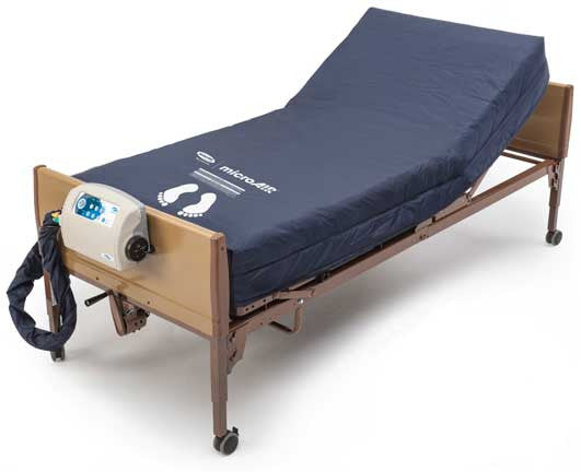 Invacare's microAIR MA600 Alternating Pressure Mattress System with Low Air Loss features an Advanced 3-in-1 Alternating Function that inflates and deflates cells in a 3:1 cycle to provide active pressure relief by supporting two-thirds of the user's body weight at any given time to help prevent and treat existing pressure ulcers. The MA600 36"W x 80"L x 8" mattress with 10 LPM (liters per minute) pump system includes Low Air Loss function provided by 7 center air cell bladders to help keep the mattress level cool and reduce moisture build up; Invacare's HeelSense Technology that helps provide further therapy and comfort by decreasing pressure in the user's vulnerable heel area; Max Inflate Mode for quick maximum inflation within seconds to assist with transfers; Cell-In-Cell Design that helps prevent bottoming out in the event of a power failure; 8 Adjustable Comfort Settings; and more. The microAIR MA600 mattress system is recommended for use in the prevention and treatment of pressure ulcers state 1 to 3 (medium risk). *Bed in photos sold separately. Download the microAIR MA600 brochure here.