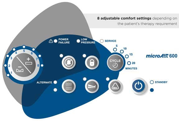 - 8 Adjustable Comfort Settings depending on the patient's therapy requirements