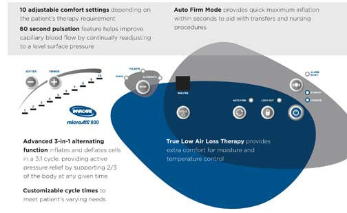 - Auto Firm Mode / Max Inflate provides quick maximum inflation within seconds to aid with transfers and nursing procedures
