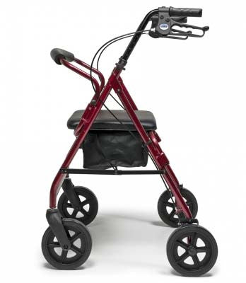 deal for larger individuals. Aluminum frame, lightweight, weighs 20 lbs and supports weight capacity up to a 450 lbs. Folds quickly and easily into a compact unit for storage and transport. Ergonomic hand grips. Easy to operate locking and quick stop loop brakes (pull up to stop; push down to lock). Padded 19.5" wide seat for increased seating surface and added comfort. Removable curved padded back bar. Adjustable handle height to accommodate broad range of user heights. Durable, heavy duty 8" wheel for indoor and outdoor use. Basket included can be placed underneath seat for carrying of personal items. Lifetime Limited Warranty.