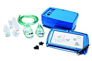 This interactive, child-friendly design provides a solution for effective aerosol treatment for children. Designed with an integrated drawing board, the Neb-a-Doodle will keep child relaxed and entertained during aerosol treatment and can be used over and over again. Reliable, piston-driven compressor. Convenient and compact design for easy transport and storage. Includes compressor, 1 user manual, 1 nebulizer accessory kit complete with 1 reusable nebulizer (single patient use only), 1 adult mask, 1 pediatric mask, 1 mouthpiece, 1 PVC tubing, 1 T adapter, 3 spare filters, and 1 reservoir tube. Five year limited warranty.