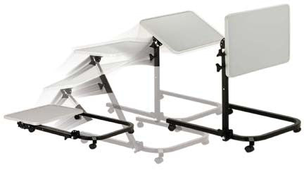 - The pivot feature allows the table top to be positioned closer to individuals in a bed, sitting in a wheelchair, or folded for storage