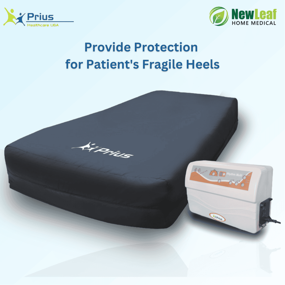 The Prius Rhythm with Safety Bolster integrates alternating pressure (with true low air‑loss and pulsation) and raised side bolsters for added patient safety