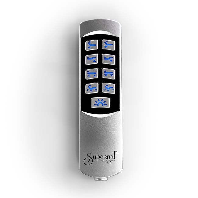 Each Supernal Hi-Low Twin 38"W, Full 53"W, Queen 60"W and Dual King 76"W (two independently adjustable Twins) by 80"L Adjustable Base with attractive fabric finish includes an easy-to-use Wireless Hand Control with large back-lit push buttons for added visibility, variable Massage, European-style Head Tilt that cradles your pillow, Wall-Hugger design so you can reach your nightstand even with the head section raised, and Emergency Power Down feature for lowering the bed in the event of a power outage. The bed deck's Overall floor to top of deck height range of 10.5" Low to 20.5" High accommodates most user heights, transfers, and caregiver needs. Adding optional 5" Casters will increase the height range to 15.5" Low to 25.5" High and additionally provide added clearance underneath the bed to accommodate most patient lifts. *Note: You will want to factor in your Mattress Height to arrive at the total overall height range of your bed.