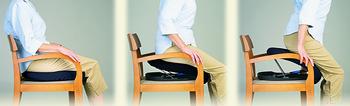 Self-powered lifting cushion provides gentle assistance up and down from most armchairs and sofas. Patented LeveLift technology in a flexible seat curves to a flat surface and provides a safe lift, with no forward dumping motion. Lifts up to 70% of the user's body weight. User simply leans forward and the cushion automatically assists. Portable, with built-in carrying handle. Coated memory foam cushion adjusts to weight, shape and temperature; wipes clean with mild soap and water. Black, waterproof, fire-retardant cover is removable and machine washable. Polycarbonate base features a nonskid surface to keep seat from shifting on cloth surfaces. Lifts occupants weighing up to 350 lbs.